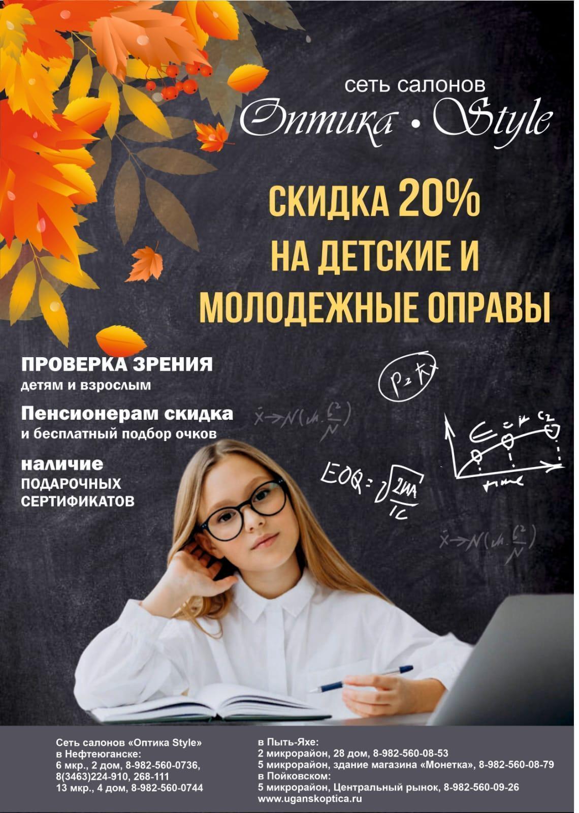 Весь Сентябрь в нашей оптике действует скидка 20% на детские и молодёжные оправы
